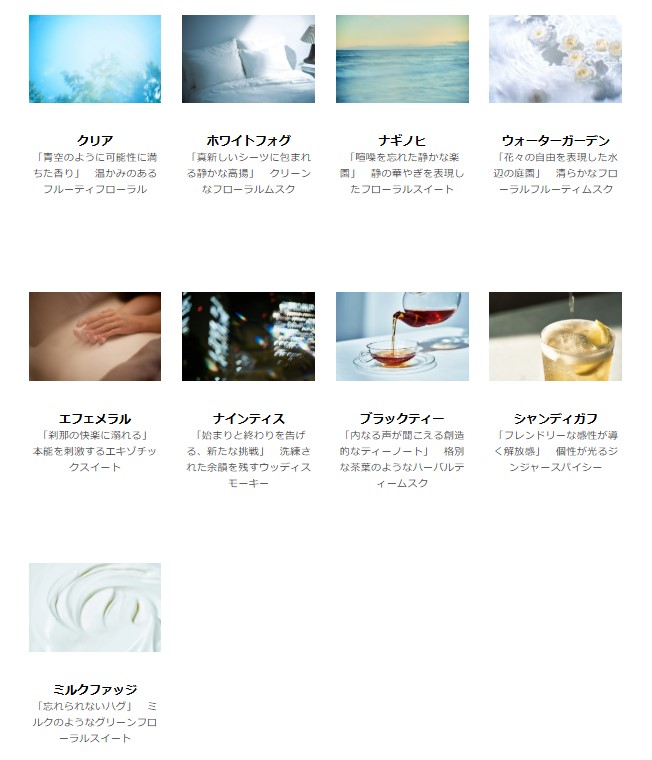 「サムシング」「イブシトラス」「ハニームスク」は、香りのバリエーション見直しに伴い10月22日(水)をもって販売を終了となります。