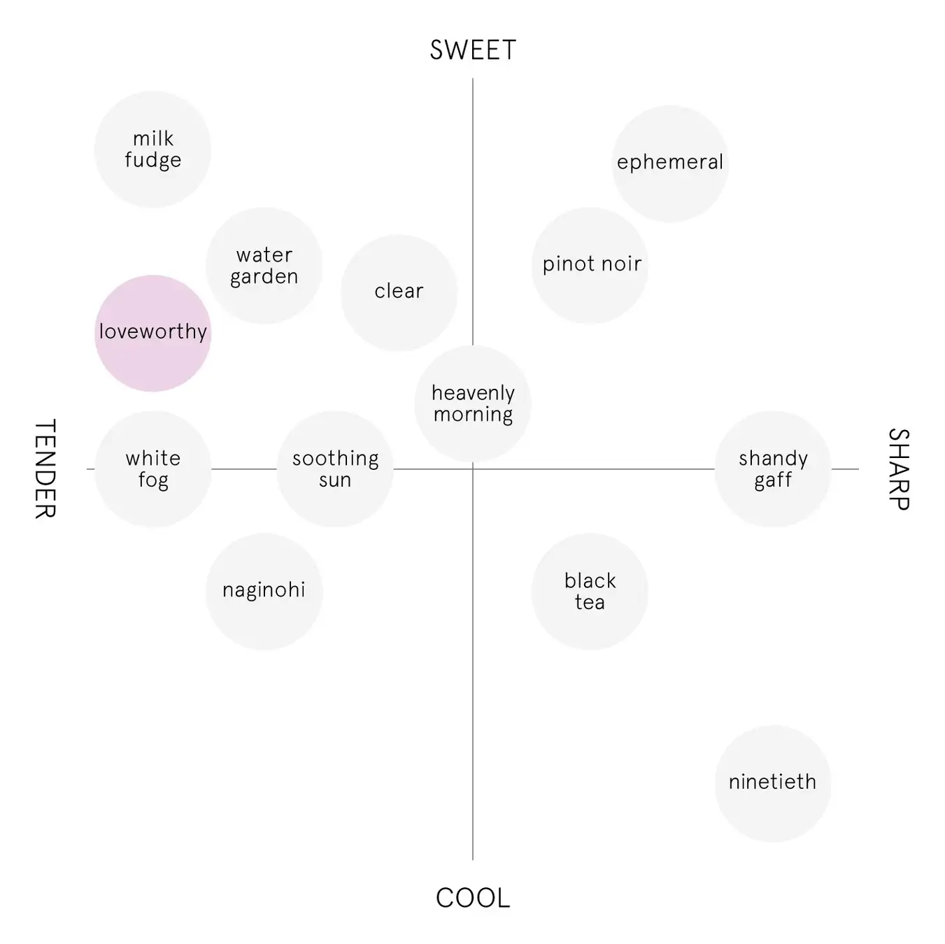 ホリデーシーズンにぴったりな「ラブワージィ」の、瑞々しく華やかな香りをお楽しみください。