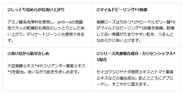 発酵ローズはちみつ*2や植物エキスによるマイルドピーリング*3効果で、つるんとキメの整った、透明感あふれる肌へ。