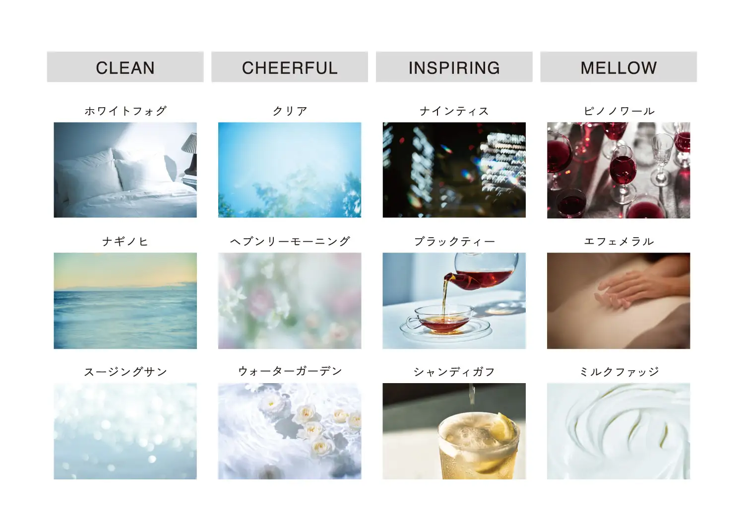12種のマインドセンスから好きな香りを組み合わせれば、気分やシーンにぴったりの香りが見つかります。